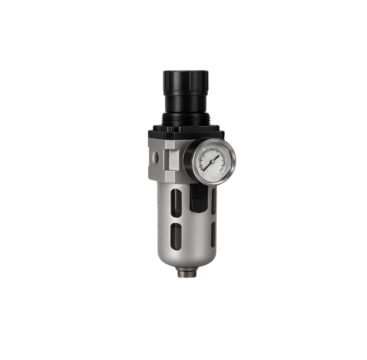 Nuestros reguladores con filtro están diseñados para ofrecer control de presión preciso y una remoción eficaz de contaminantes como humedad, aceite y partículas. Disponibles en distintos tamaños de cuerpo, conexiones de puerto (G1/8 a G1″) y niveles de filtración (5 μm a 40 μm), cumplen con los requisitos de una amplia variedad de aplicaciones industriales. Las opciones incluyen modelos con manómetros integrados, drenajes manuales o semiautomáticos y accesorios de montaje para instalación en panel o en línea.