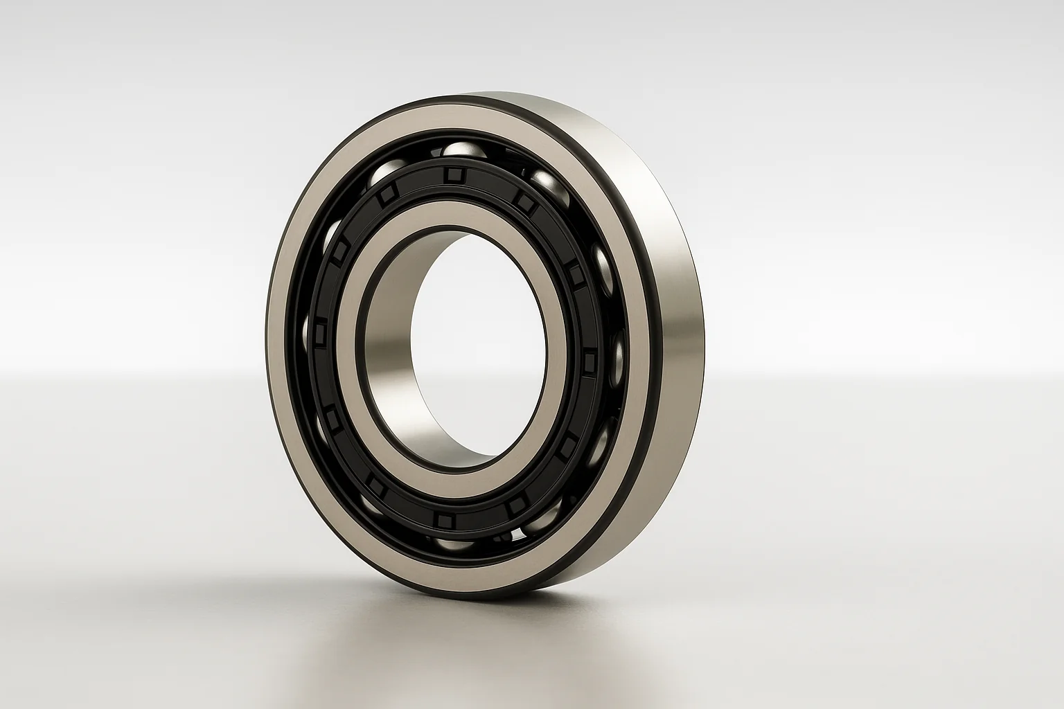Os rolamentos de rolos cilíndricos apresentam contato linear entre os rolos e as pistas, o que reduz significativamente a concentração de tensões e permite maior capacidade de carga e velocidades mais altas em comparação com rolamentos de esferas. Disponíveis em configurações de uma, duas e quatro carreiras, esses rolamentos podem ser personalizados para suportar funções de apoio livre, semi-fixo ou fixo, dependendo do design interno.