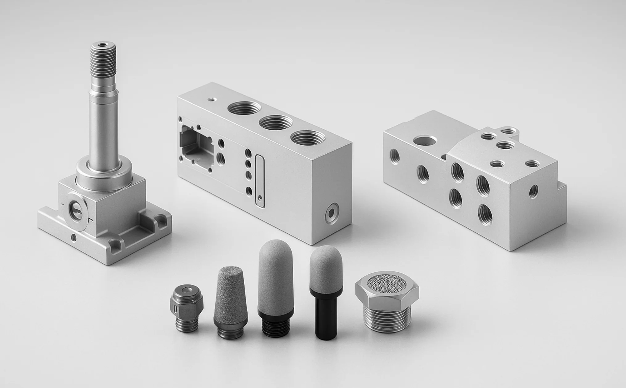 A nossa seleção inclui adaptadores de montagem, sub-bases, placas manifold, elementos silenciadores, caixas de proteção, conectores elétricos e muito mais. Estes acessórios suportam a instalação segura, modular e eficiente de válvulas solenoides, ajudando a reduzir o tempo de manutenção, otimizar as configurações do sistema e garantir um fluxo ideal de sinal pneumático.