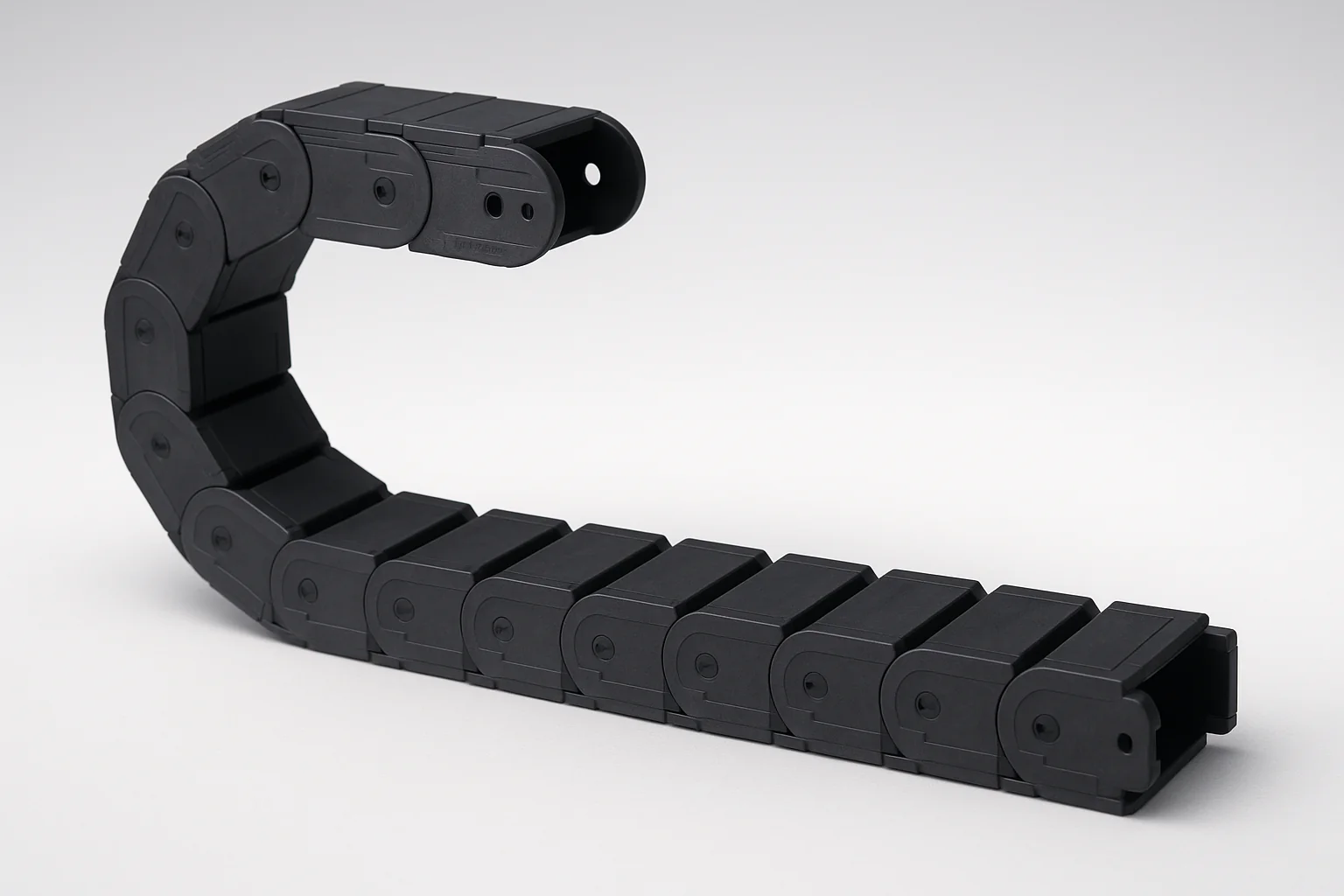 As nossas esteiras porta-cabos estão disponíveis em estruturas abertas ou fechadas e adaptam-se a vários requisitos de movimento, incluindo aplicações fixas, deslizantes e circulares (3D). Quer o seu projeto envolva maquinaria CNC, braços robóticos ou sistemas de pontes rolantes de longo curso, as nossas soluções otimizam o encaminhamento dos cabos e prolongam a vida útil em operação contínua.