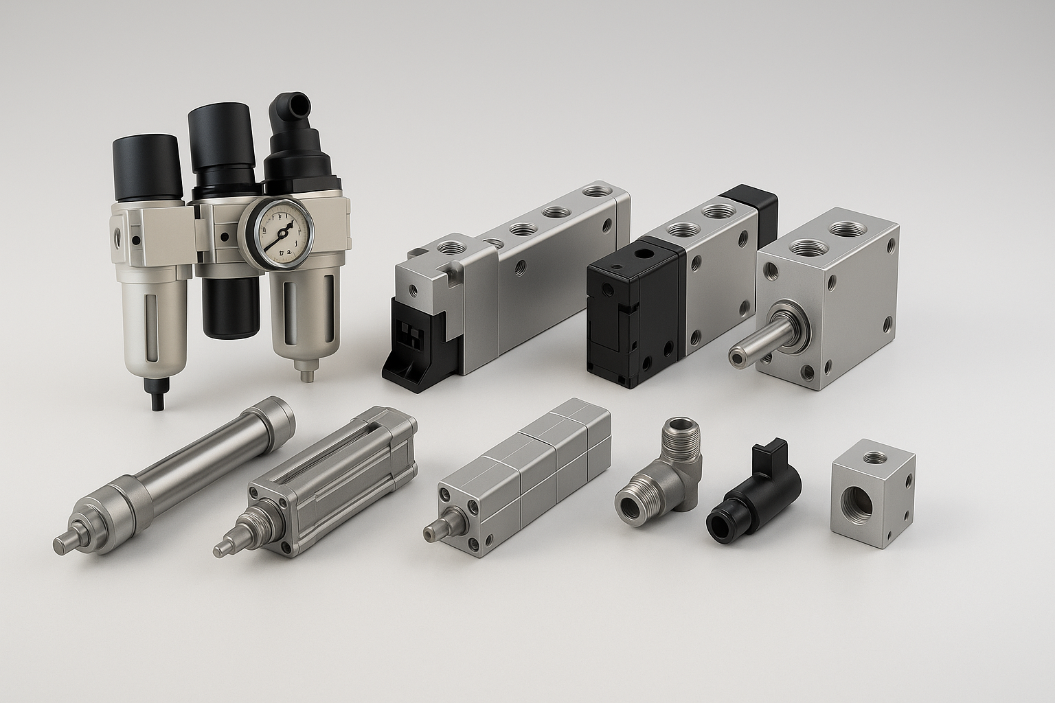 - Pneumatic: Air Preparation Units, Cylinders, Valves and more.
