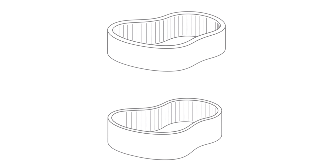 Our range includes belts with foamed coating, ideal for soft contact with sensitive surfaces, and transversal notching belts, which provide enhanced flexibility, shock absorption, and secure grip on irregular or high-friction profiles. These designs reduce slippage and wear, especially in applications where standard haul-off belts fall short.