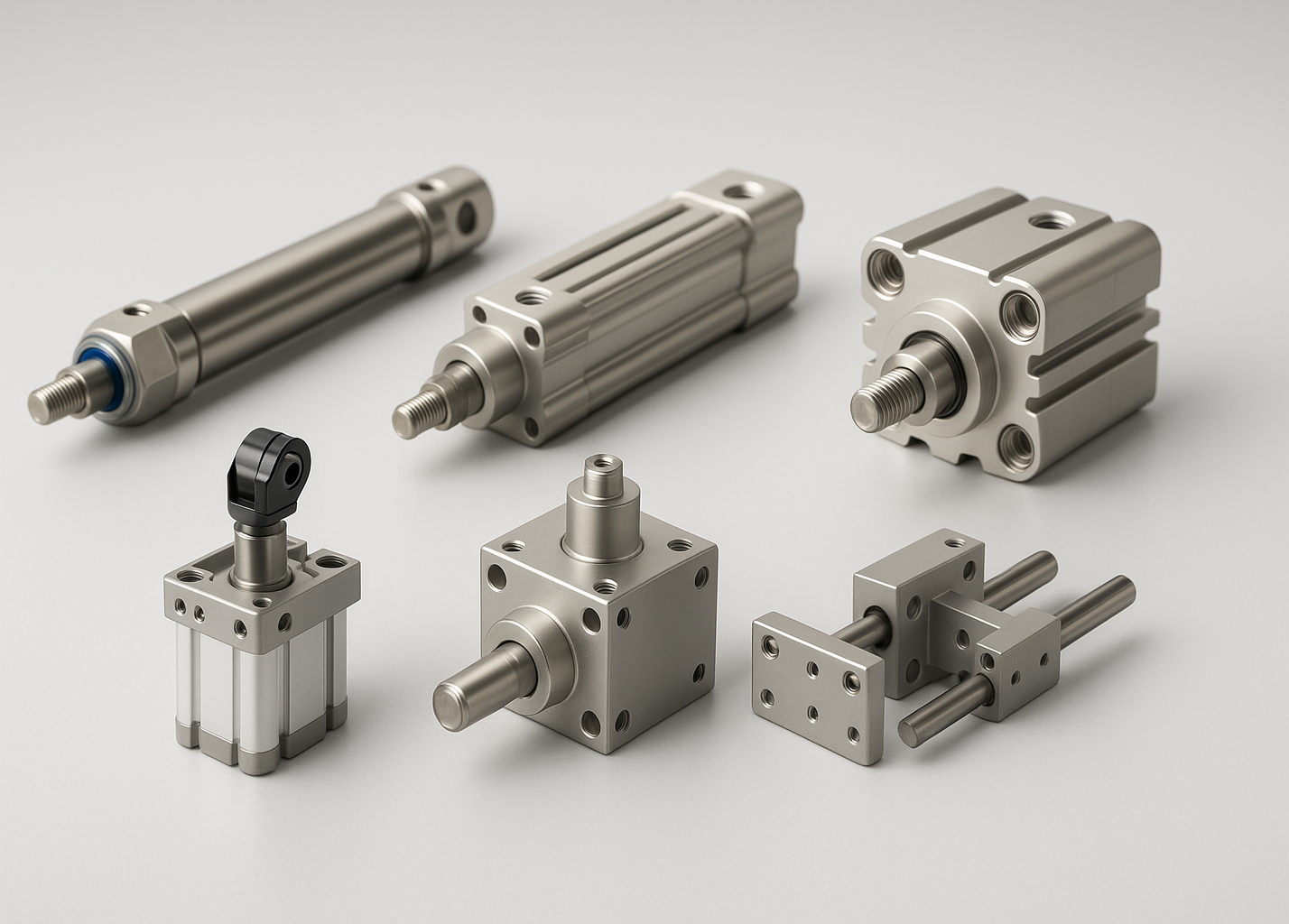 Air preparation units (filters, regulators, lubricators, and dryers) guarantee that compressed air is clean and stable, preventing contamination and protecting downstream equipment. Pneumatic cylinders, available in piston rod, rodless, compact, guided, and rotary versions, convert compressed air into linear or rotary motion for clamping, lifting, and positioning tasks. Pneumatic valves regulate flow, direction, and pressure, ensuring precise actuation and system safety through control valves, isolation valves, relief valves, and auxiliary valves.